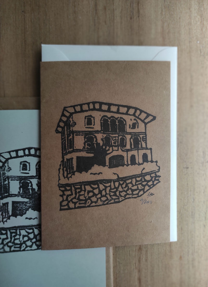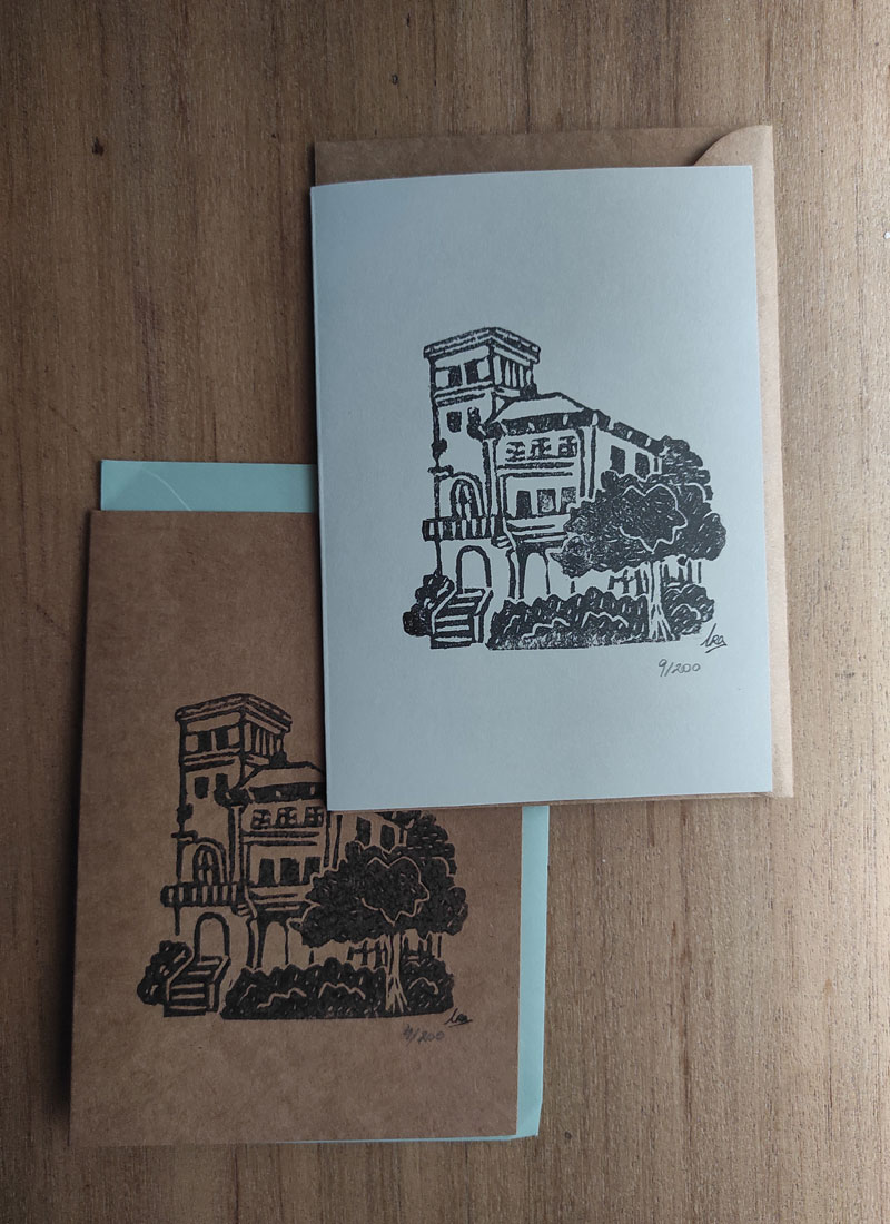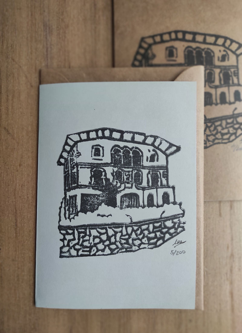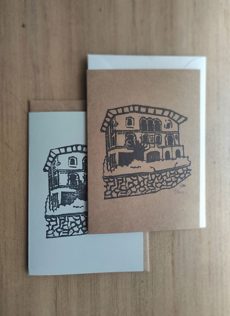 Cada casa tiene una serie limitada de 200 estampaciones sobre la cara frontal de un papel A6 en formato postal, estando el interior sin estampar. En la cara trasera de la postal está nuestro sello.